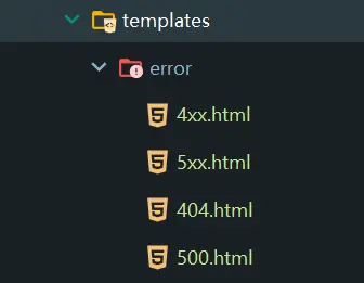 项目中使用的了模板引擎,如:thymeleaf 、freemarker等做为页面的渲染时。在templates创建/error文件夹并添加错误的状态码对应的.html文件,如下图:
