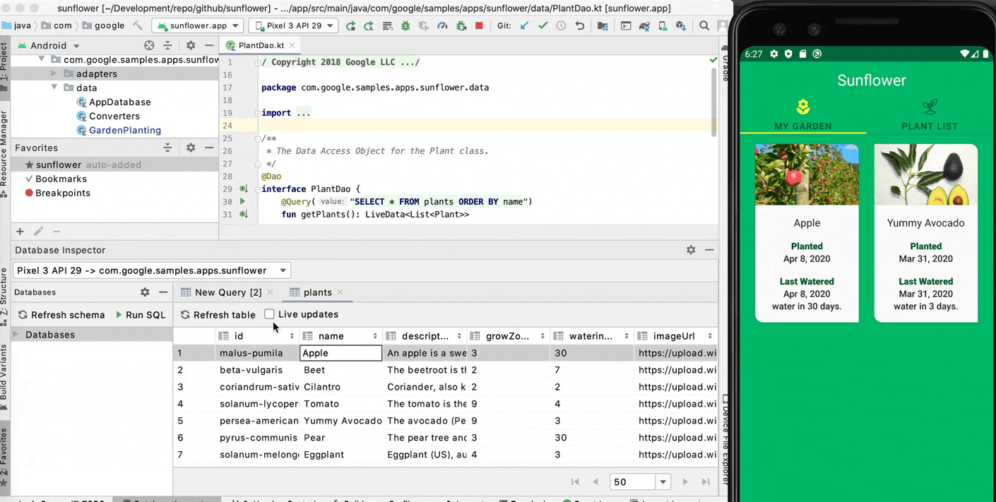 在本文中,我们将结合使用 Database Inspector 和 Sunflower App 来测试一些极端情况。Sunflower 是一个园艺 App,用于说明 Android Jetpack 的 Android 开发最佳实践。在阅读本文时,我建议您克隆这个 Github 仓库。