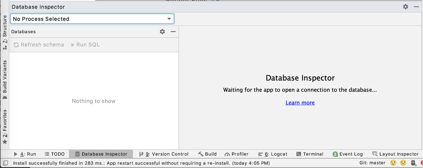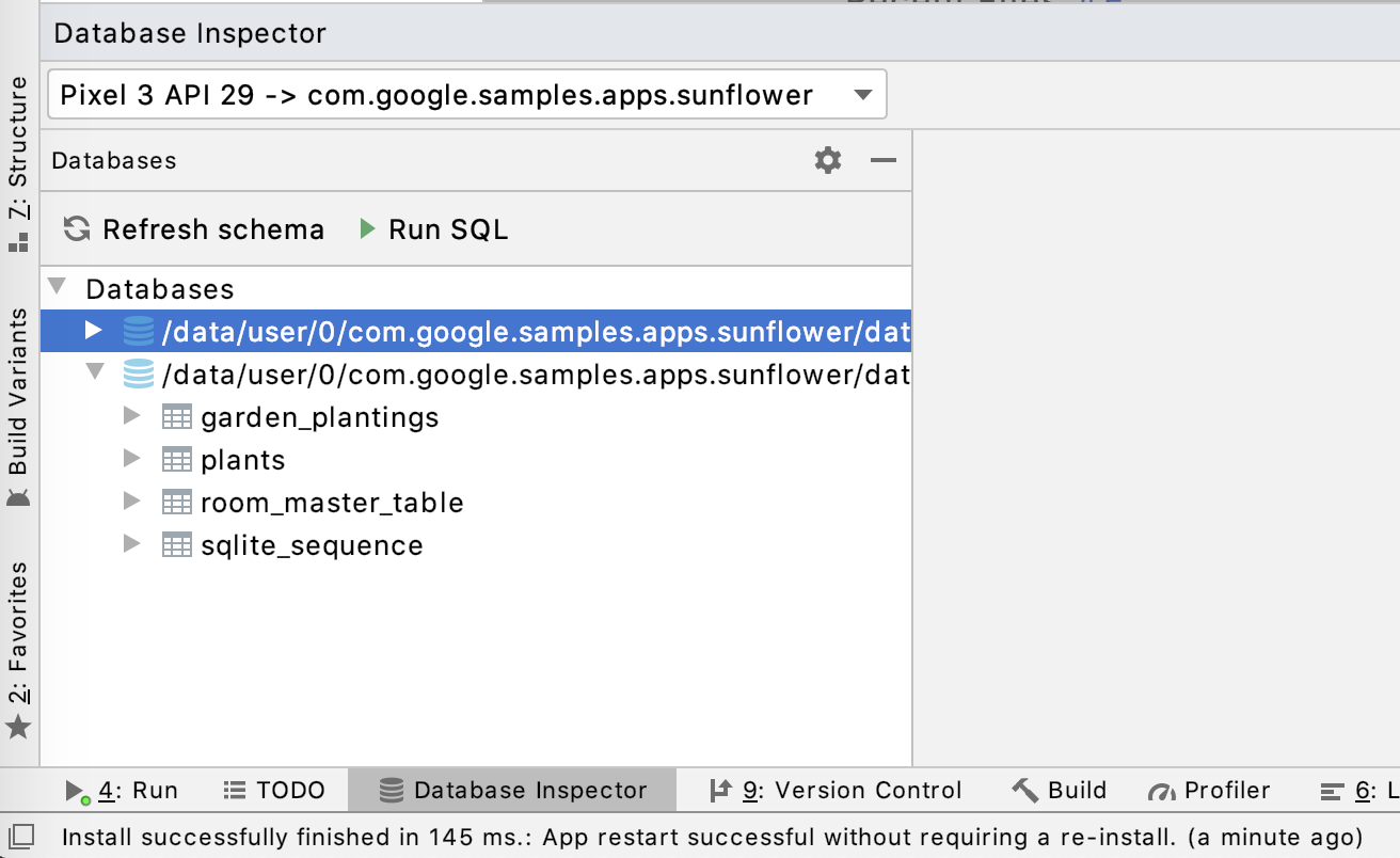 最新版本的 Android Studio 4.1(当前在Canary中可用)附带了一个名为 Database Inspector 的新工具, 该工具可帮助您检查,查询和修改正在运行的应用程序中的数据库。