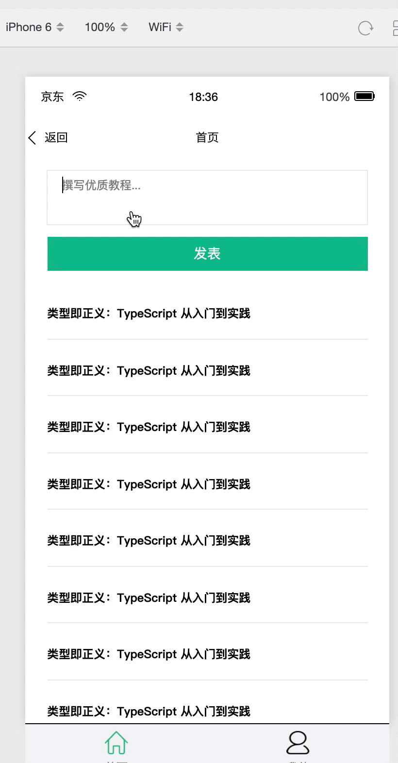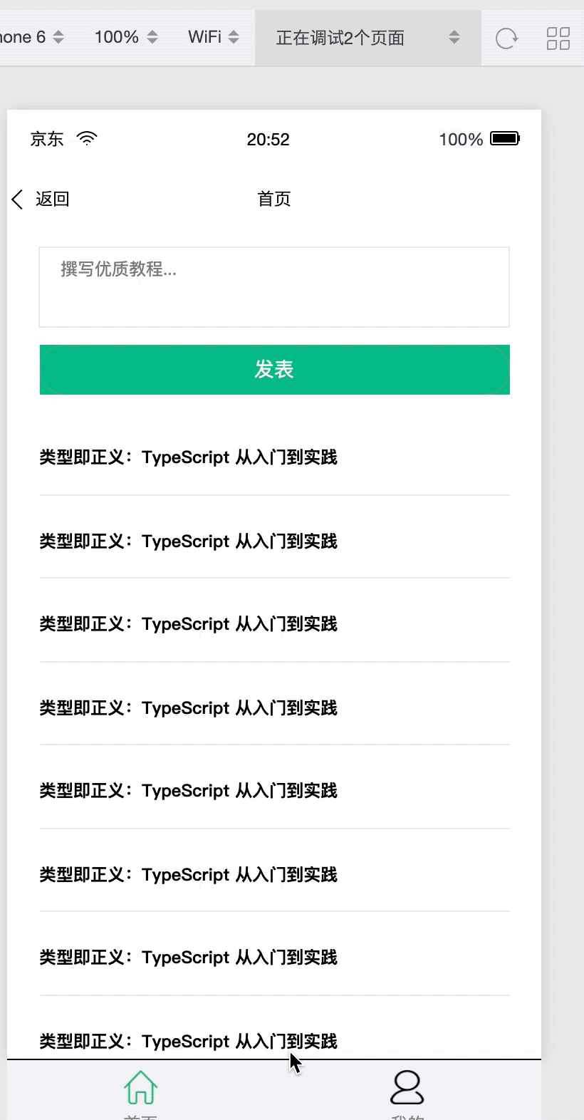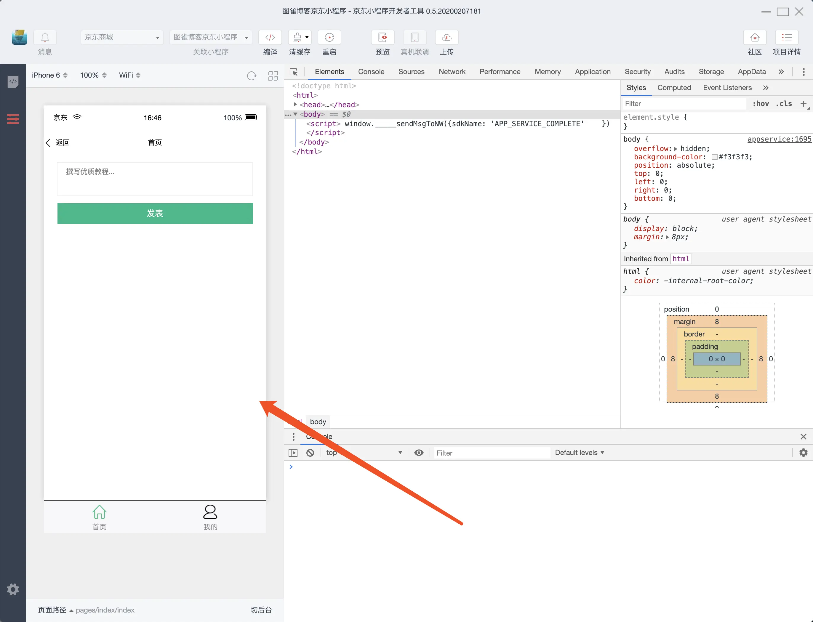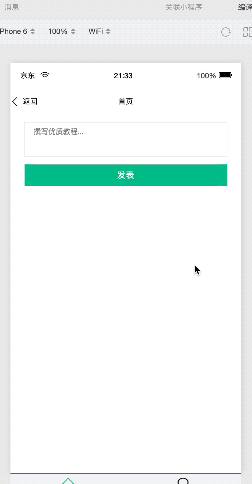 这个时候,你的项目运行着,打开之后,你会在京东小程序开发者工具里面看到如下效果:
