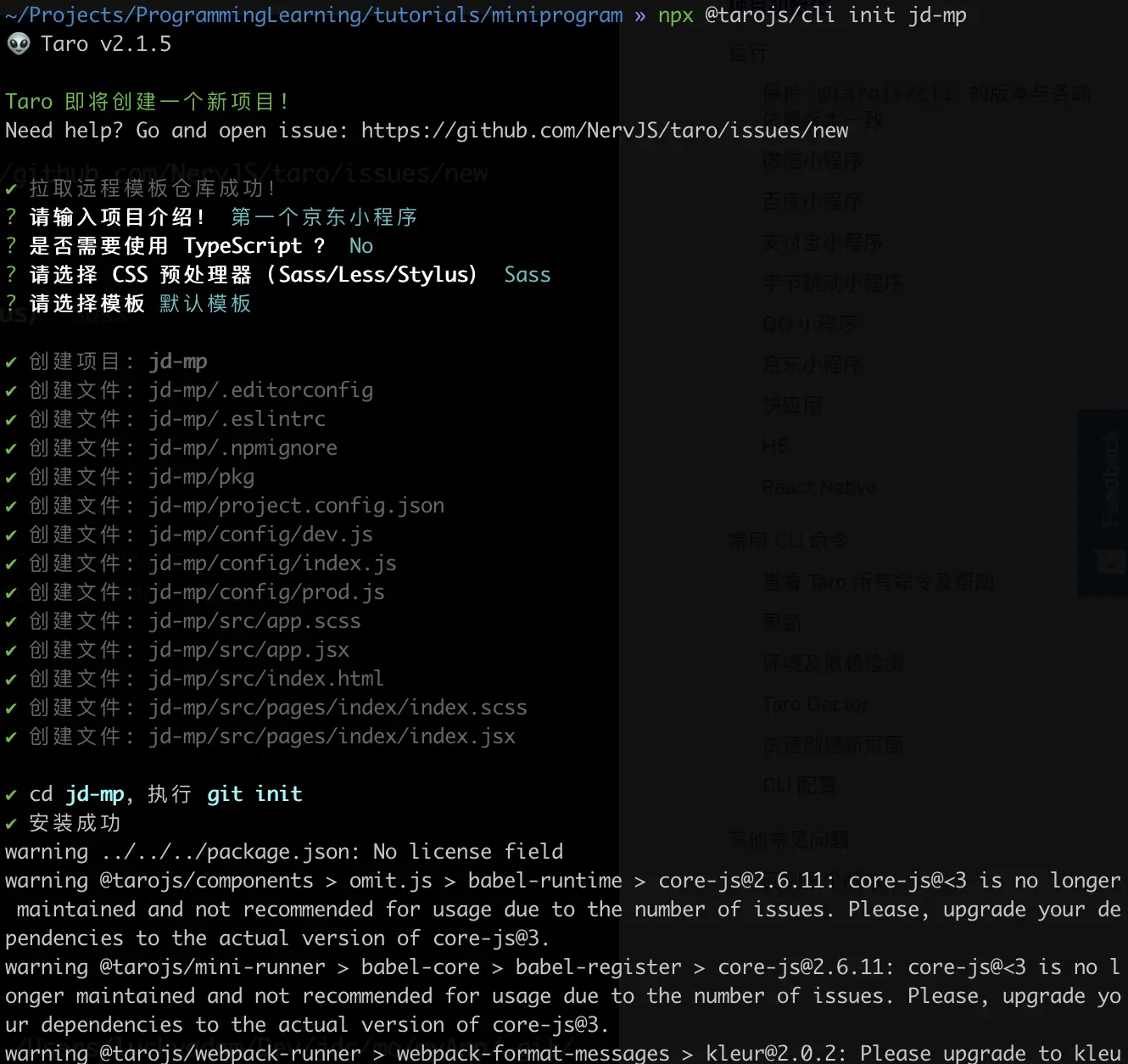 创建项目 jd-mp 成功!