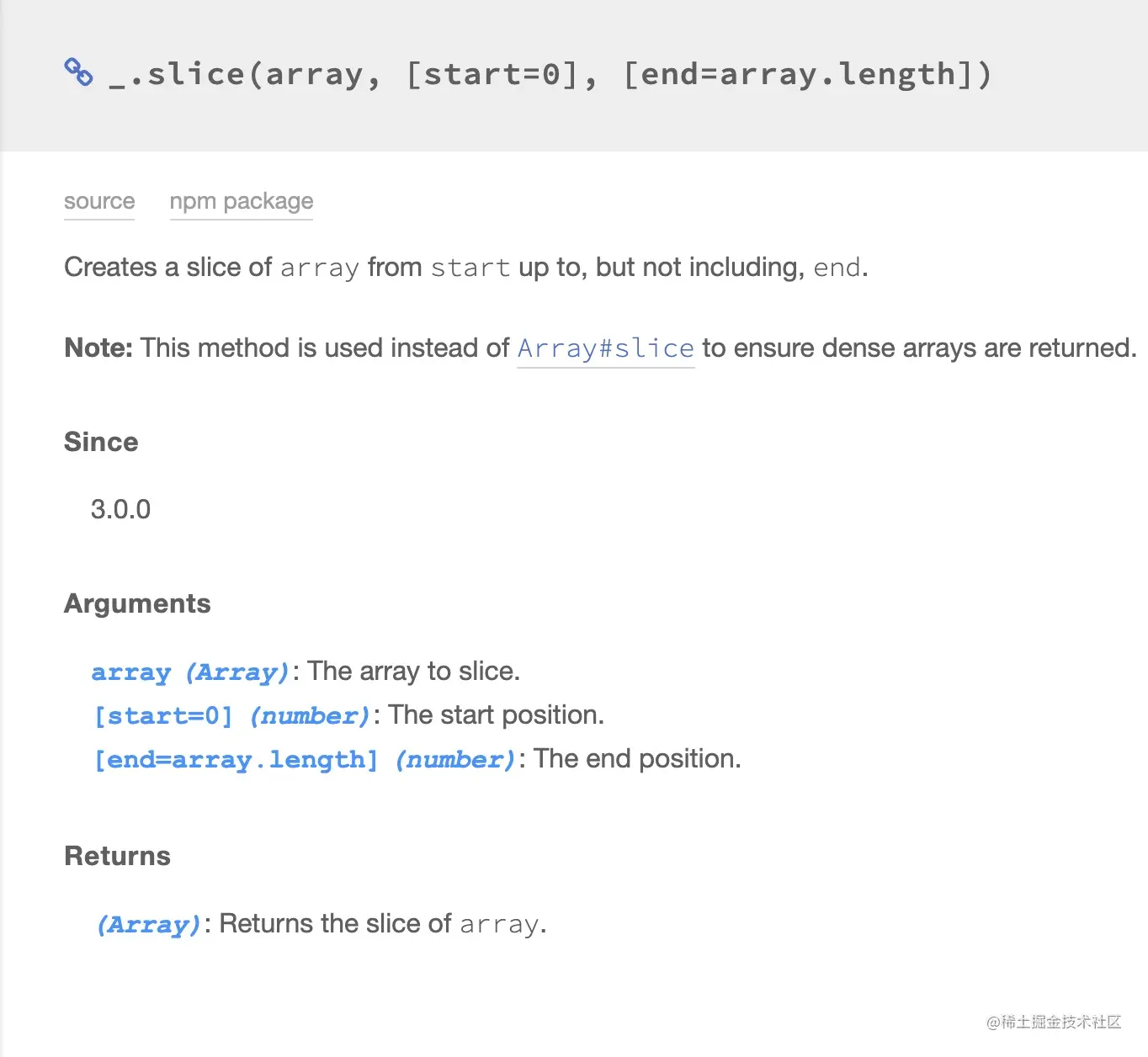 该方法是对数组进行部分截取,并返回一个数组副本;参数start是截取的开始数组索引,end参数等于你要取的最后一个字符的位置值加上1(可选)