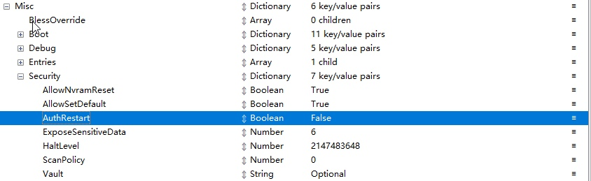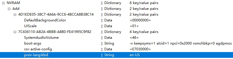 -v keepsyms=1 alcid=1 npci=0x2000 vsmchbkp=0 agdpmod=pikera - 注意prev-lang:kbd的字段属性也要改,改成String