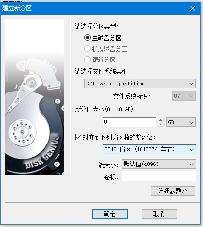 - 运行DiskGenius,在可用空间中新建一个分区,大小为200M就完全足够了