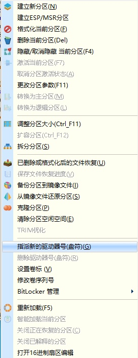 - 拷贝完成后,需要建立一个对该EFI分区对启动选项。首先需要挂载新建立的EFI分区,在DG中右键,分配盘符即可
