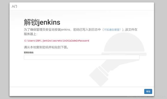 <!-- <max-file-size>52428800</max-file-size> -->1.2 启动tomcat,浏览器访问localhost:8080/jenkins出现以下界面,提示你输入密码。密码在红色字表示的文件中。