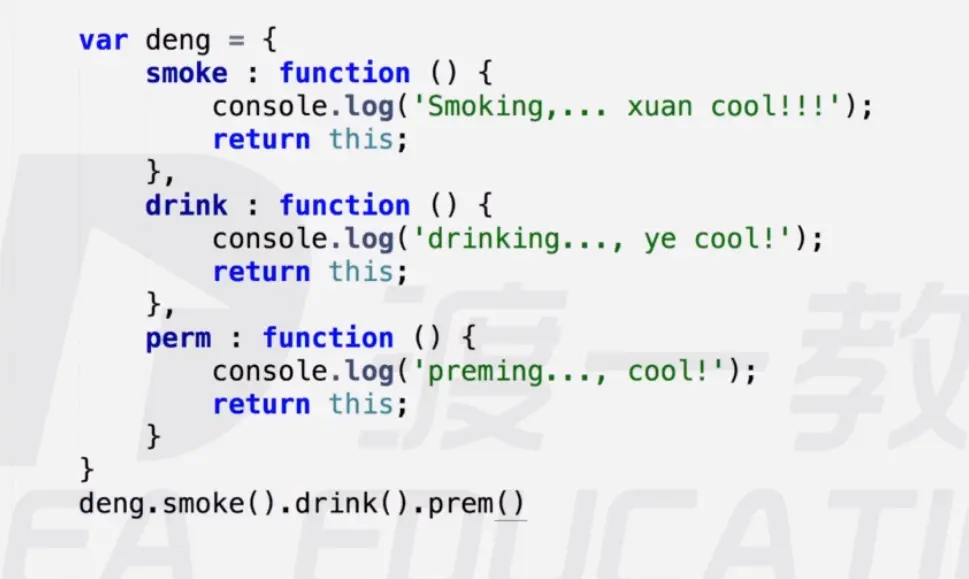 - js中连续调用方法,可以写成一个对象,对象的每个方法return this。
