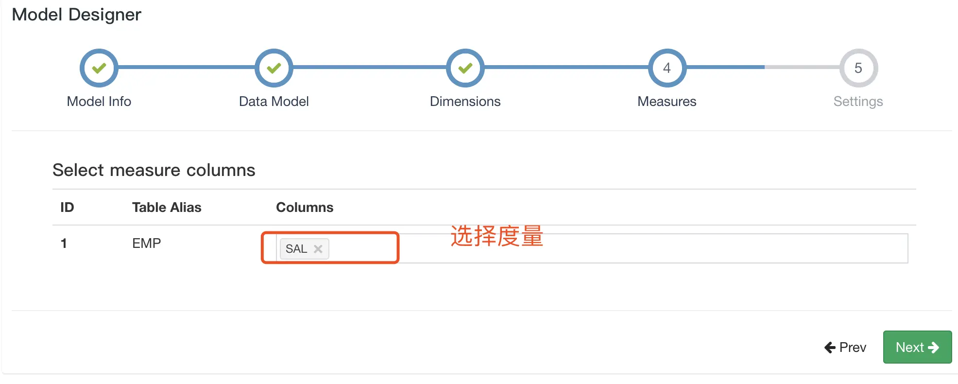 度量就是被聚合后的统计值,一般如订单金额、商品价格等等,在Demo数据中对应的列就是sal。在基于sql的查询中,Group by 的属性通常就是维度,而所计算的就是度量。