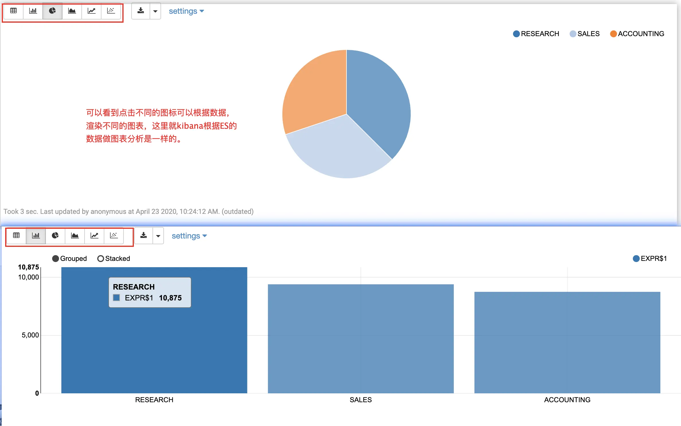 点击左边的按钮可以渲染不同的图表