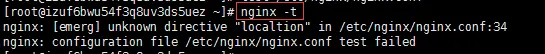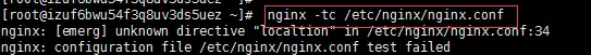 nginx -t如上可知/etc/nginx/nginx.conf文件的第34行配置错误