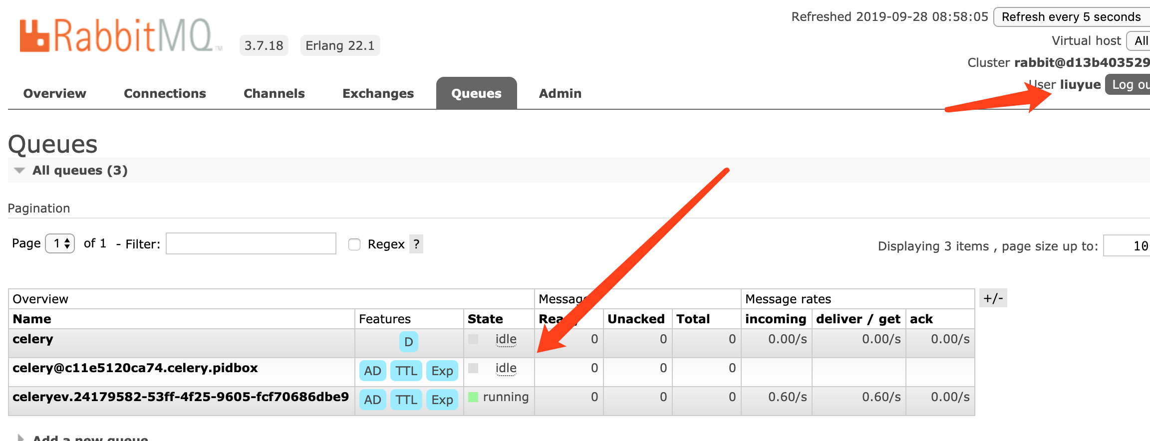 进入浏览器http://localhost:15672用账号登录 liuyue:liuyue