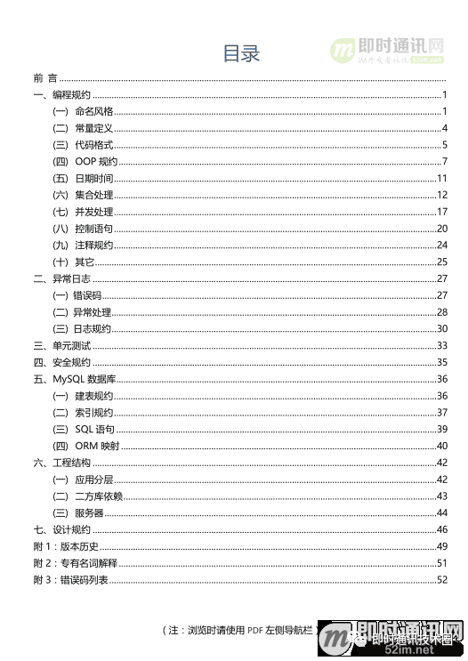 2017年开春之际,阿里诚意献上重磅大礼:《阿里巴巴Java开发手册(规约)》,首次公开阿里官方Java代码规范标准。这套Java统一规范标准将有助于提高行业编码规范化水平,帮助行业人员提高开发质量和效率、大大降低代码维护成本。 《阿里巴巴Java开发手册(规约)》是阿里内部Java工程师所遵循的开发规范,涵盖编程规约、单元测试规约、异常日志规约、MySQL规约、工程规约、安全规约等,这是近万名阿里Java技术精英的经验总结,并经历了多次大规模一线实战检验及完善。这是阿里回馈给Java社区的一份礼物,希望能够帮助企业开发团队在Java开发上更高效、容错、有协作性,提高代码质量,降低项目维护成本。 另外,《作者谈《阿里巴巴Java开发手册(规约)》背后的故事 》一文,可以看看作者怎么说。
