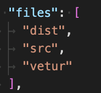 首先上面两个文件是必备的,对于组件库中的组件用法属性得先编写一套规则。完成规则创建后,将这两个文件放到项目当中。像我直接在项目当中新建了一个 vetur 名称的文件夹,将这两个文件放到了其中。之后只需要在 package.json 文件中加入几行代码