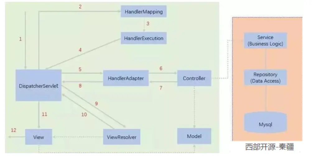 官方springMVC执行原理图: