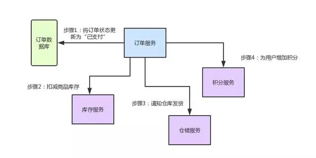 - 用户针对一个订单完成支付之后,就会去找订单服务,更新订单状态