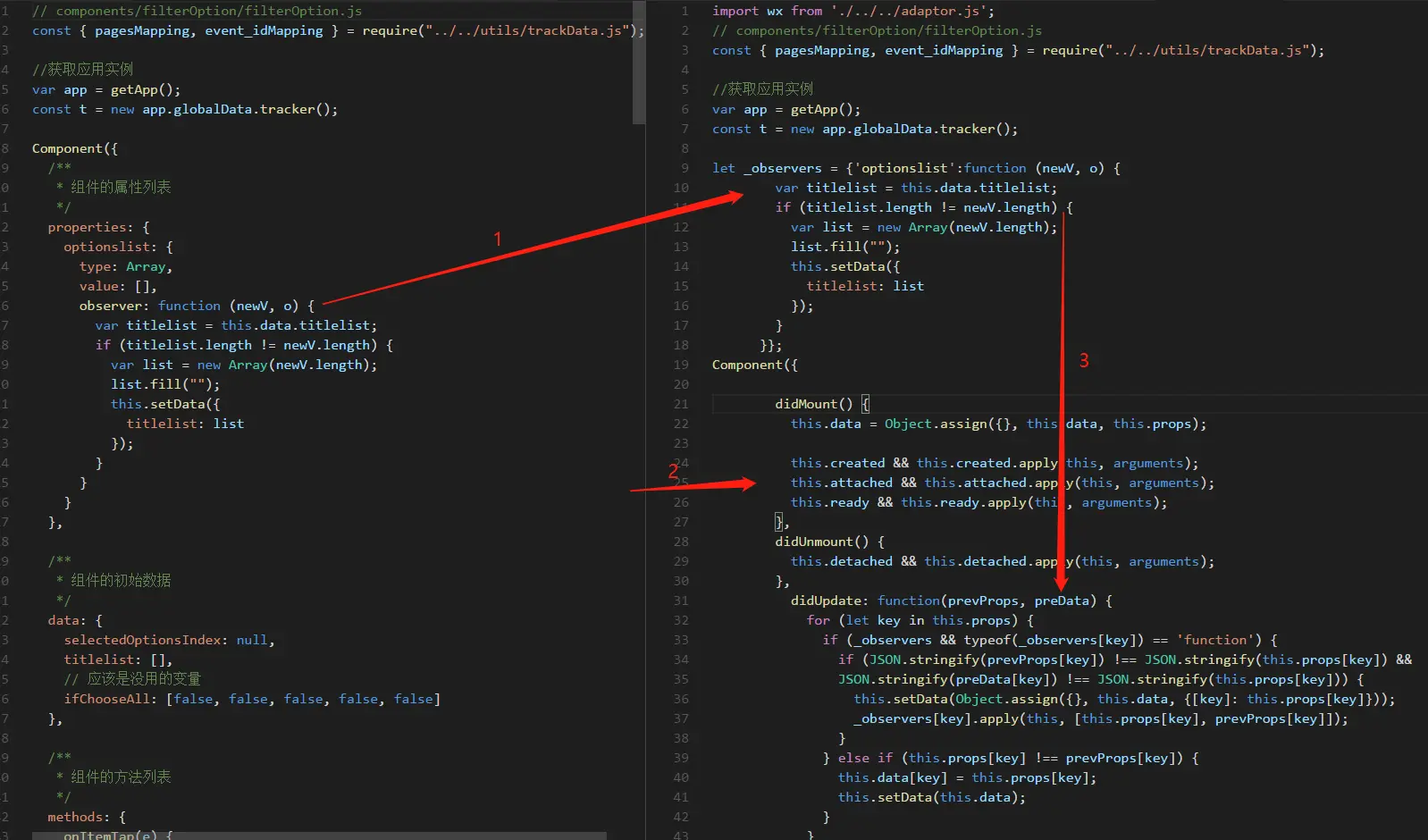 } else { // 微信小程序中observer也可以使用对象的形式