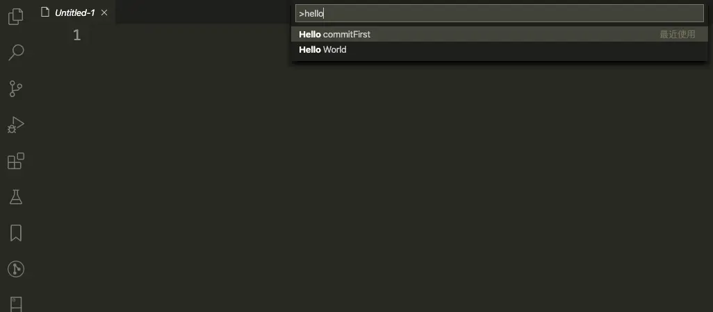 command+ shift + P 快速打开命令运行,输入hello 找到 "Hello World" 命令,即为运行我们的Hello world命令事件。