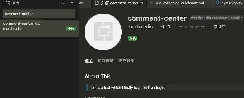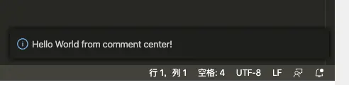即我们上面提过的 vscode.window.showInformationMessage('Hello World from comment center!');