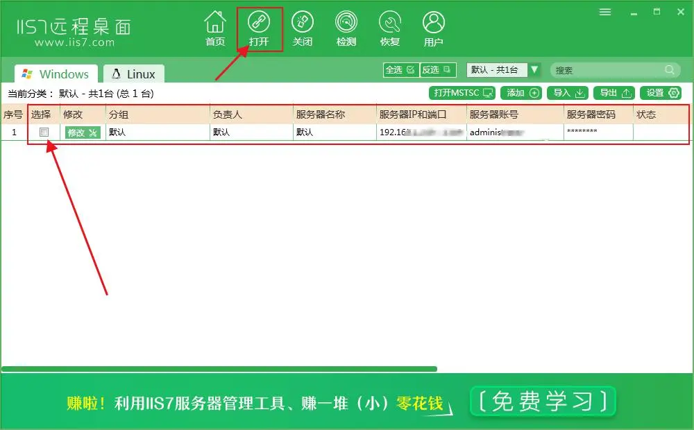 方法一:打开IIS7远程桌面点击“添加”并输入vps信息
