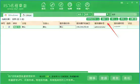 该组件一经推出受到了很多用户的拥护和喜好,所以在WINDOWSXP和2003中微软公司将该组件的启用方法进行了改革,我们通过简单的勾选就可以完成在XP和2003下远程桌面连接功能的开启。当然随着时代的进步,我们操作管理的模式也在不断的更新。为了更方便的我们管理我们的服务器,越来越多的人都会用到远程桌面管理连接服务器,让我们更方便跟简洁的用一台电脑来批量操作我们的VPS服务器,现在IIS7远程桌面管理这是我觉得比较好用的一款程序。