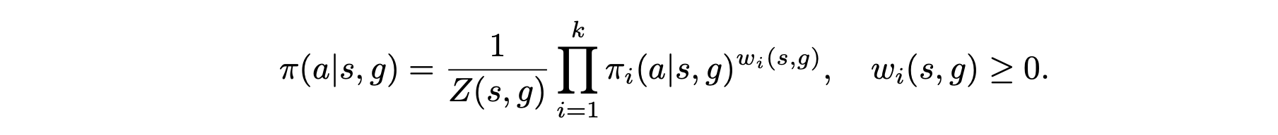 Analysis:这篇文章依然是Modularity在机器人上的应用文章。作者提出了Multiplicative Compositional Policies,可以说是Mixture of Experts 的变种,由于policy输出Gaussian,所以,不像Mixture of Experts采用加权求和输出,而是对log likelihood 加权求和,因此,其形式为: