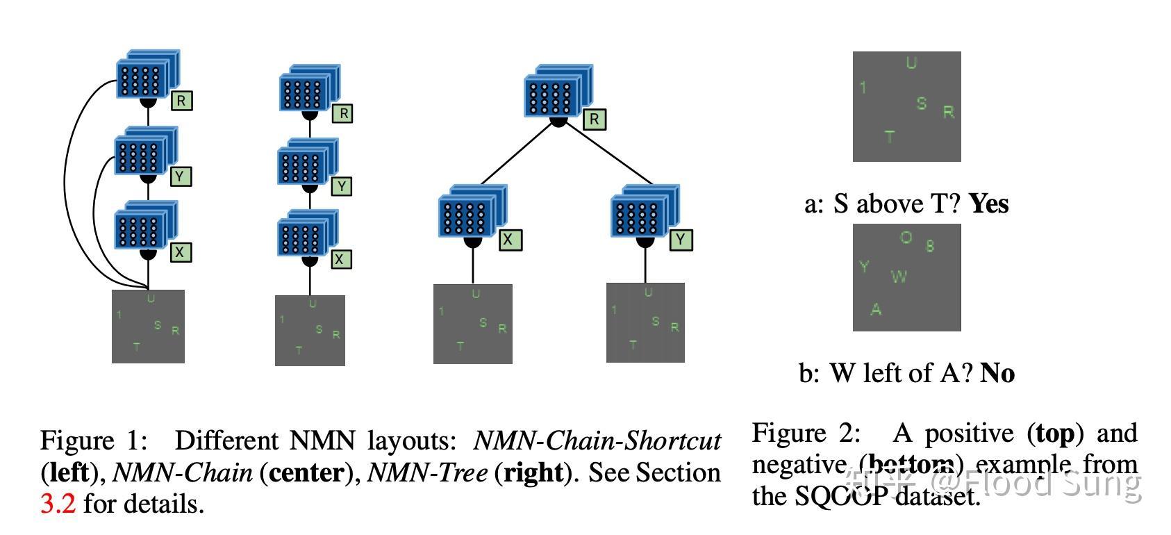 Introduction & Conclusion: 这篇文章属于验证性文章,我们一直说Modularity能实现Generalization,特别是Compositional/Systematic Generalization,但是没有专门对比一下。所以,这篇文章就构造了这样一个实验,非常简单的VQA实验,如上图,一张图里有很多字母,问题就问字母之间的相对位置。那么训练集和测试集的问题和字母的相对位置是不同的,这就导致神经网络必须具备Compositional generalization才能在测试集中解决的很好。那么,显而易见上图中是树形结构是最佳的模块化方式。这篇文章通过大量的实验证明说其他方法都不好,就这种最好。