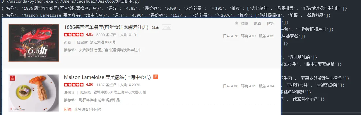 {'名称': 'Maison Lameloise 莱美露滋(上海中心店)', '评分': '4.90', '评价数': '11\ueeb5\ue753', '人均花费': '¥\uf802\uf0b6\ue753\ue867', '推荐': ['鸭肝棒棒糖', '前菜', '餐后甜品']}