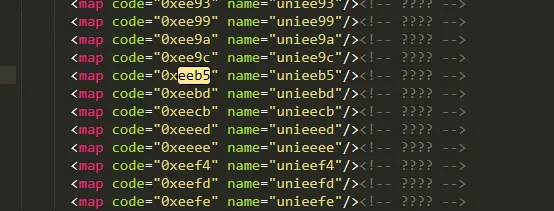 需要安装fontTools包,没安装的请(pip install fontTools) from fontTools.ttLib import TTFont def get_xml(self): font = TTFont('dzdp.woff') font.saveXML('dzdp.xml')- 执行上述方法(和脚本放在同一目录下,改好名字),就会得到一个xml文件,然后用工具打开这个xml文件,直接全局搜索eeb5,很快就会定位到这么一行。从而就会很清楚的了解到。页面中的0xeeb5和ttf文件中的unieeb5是意义对应关系。也就再次证明了0xxeb5就是数字3