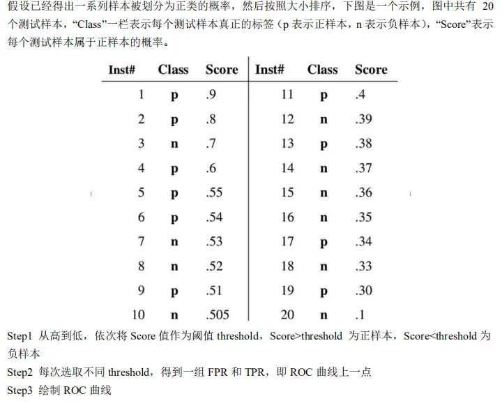 其实,我们并不一定要得到每个测试样本是正样本的概率值,只要得到这个分类器对该测试样本的“评分值”即可(评分值并不一定在(0,1)区间)。评分越高,表示分类器越肯定地认为这个测试样本是正样本,而且同时使用各个评分值作为threshold。将评分值转化为概率更易于理解一些。