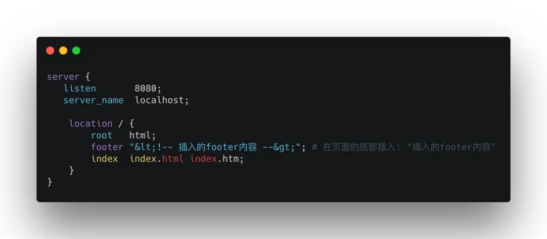 引入第三方模块 nginx-http-footer-filter 后,可以实现直接向页面底部插入代码块的能力。