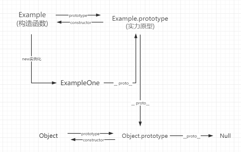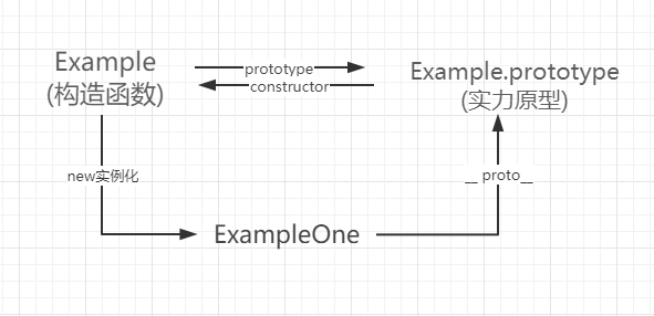 // ExampleOne是个实例对象,带有的是__proto__属性,Example是个构造函数,带的是prototype属性