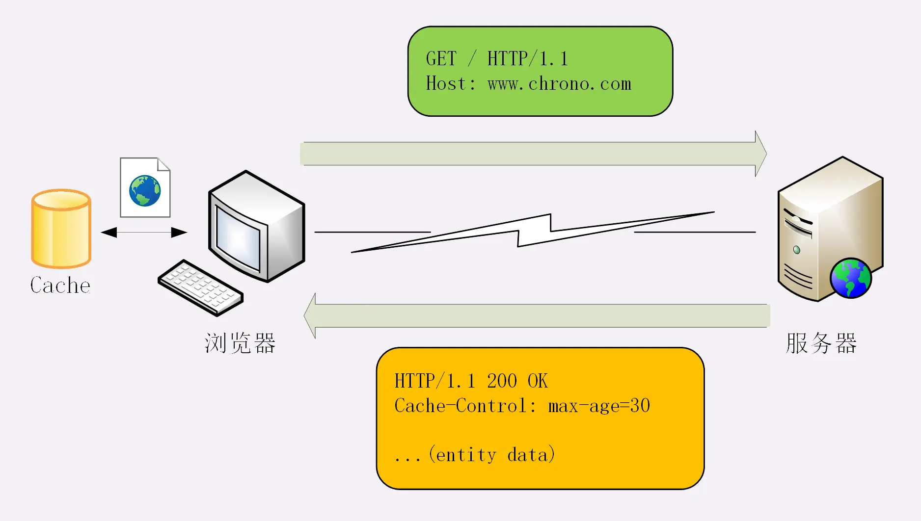 其实不止服务器可以发“Cache-Control”头,浏览器也可以发“Cache-Control”,也就是说请求 - 应答的双方都可以用这个字段进行缓存控制,互相协商缓存的使用策略。
