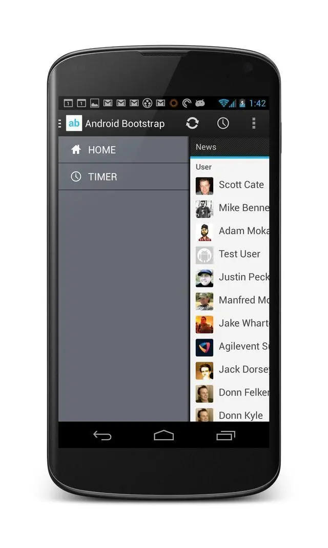 一款优秀的侧滑菜单组件。 Google+, YouTube和Facebook在它们的应用中采用的侧滑菜单流行开来, 国内也有很多的应用如网易新闻等也采用了这种菜单方式。 侧滑菜单组件很好几种, 尤以此款最为好用。 看看官方网站上的知名用户就知道了。