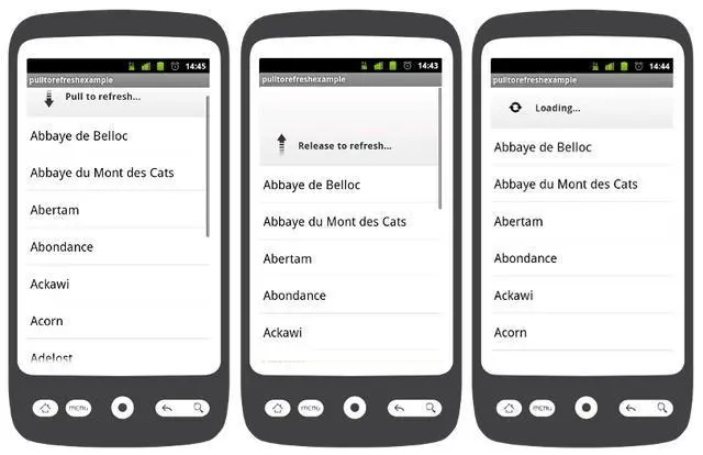 你不陌生, 在列表或者视图的顶部或者底部拖动可以刷新数据和页面。可以和ListView、ExpandableListView、GridView、WebView、ScrollView、HorizontalScrollView、ViewPager配合使用。