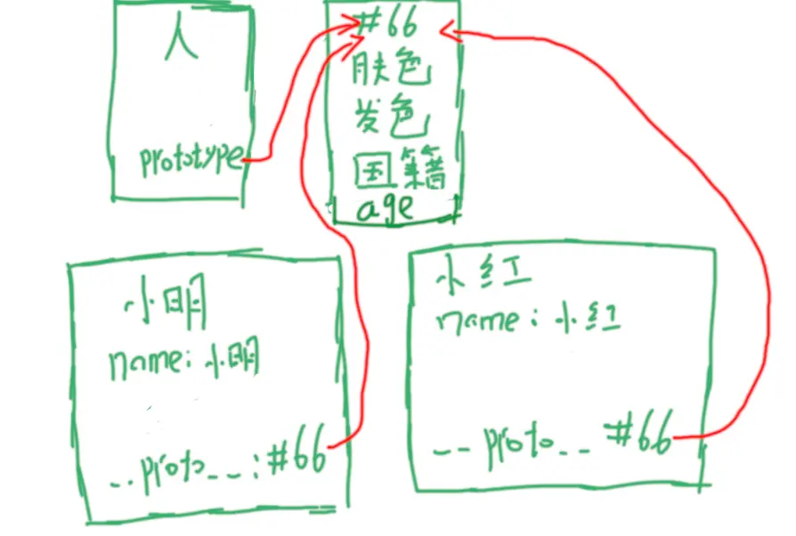 例如:我们可以构造一个 ‘人’ 对象,它可以包含prototype(共有属性),比如 肤色,发色,国籍等。