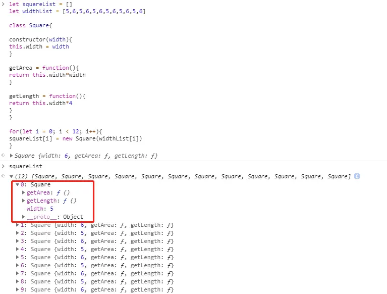 使用 getArea = function(){} 时,我们发现原型失效了,getArea 又跑到每个对象下面去了