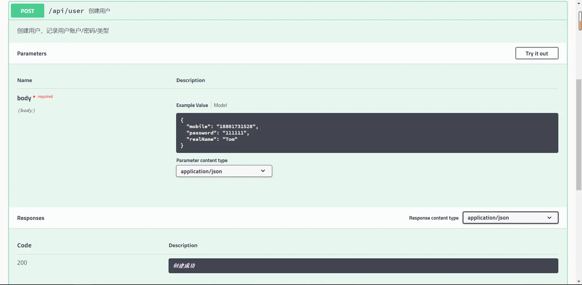 点击try it out会在下方出现一个 蓝色按钮,点击就会进行测试特别方便。