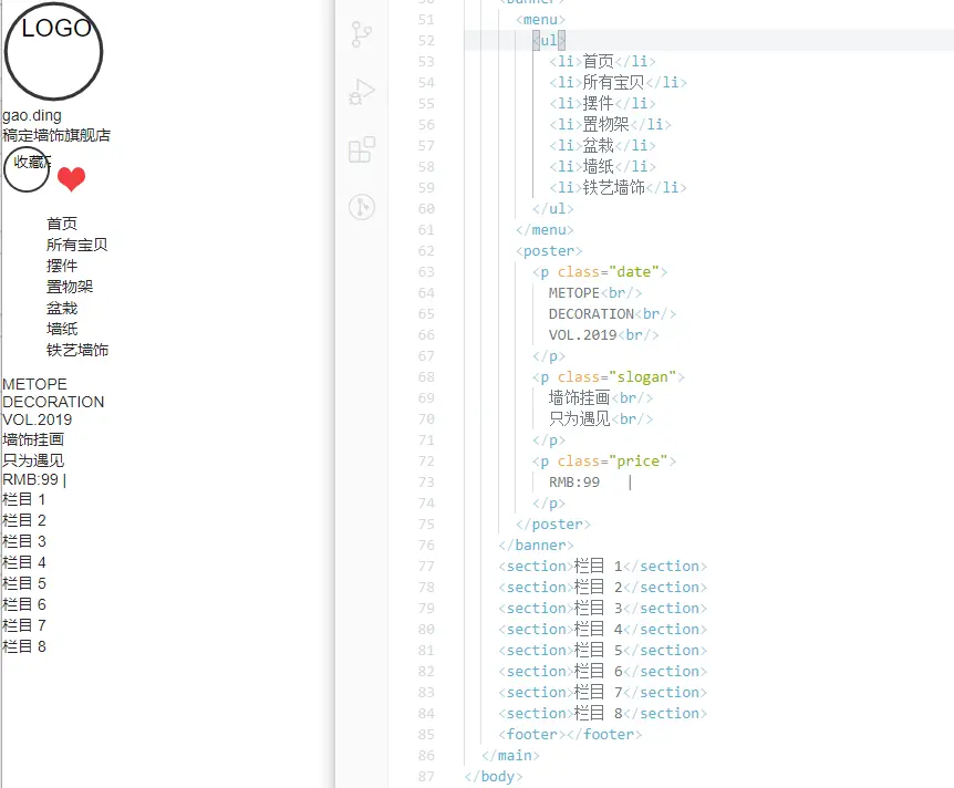 按照昨天的规划,今天这边就需要从实例开始实战复杂页面了,早上在稿定设计上找了一个淘宝店模板页面。