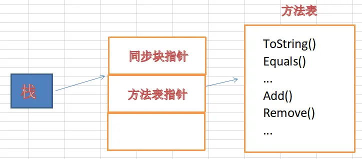 想看到JIT编译后的代码,这个说难也不难,其实每个对象头上都有一个方法表指针,而这个指针指向的就是方法表,方法表中有该类型的所有最终生成方法,如果不好理解,我就画个图。