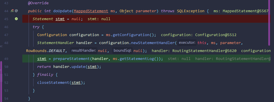 - 进入execute方法,可以看到这里是mybatis执行调用的地方
