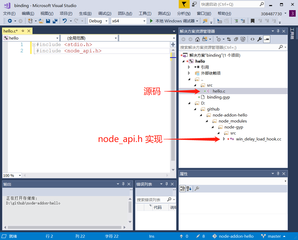 const addon = require('./build/Release/hello.node'); // 如果 VS 编译模式是 Release