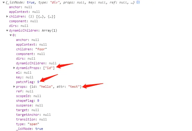 经评论提醒,发现vue2中对于纯静态节点也有优化,但是上面demo中由于只有一层纯文字静态节点,所以未判定为static,套一层div后就会标记为static,之后进入patch阶段会判定是静态节点直接return。 vue3中patch则只会比较dynamicChildren节点,静态节点不能进入patch