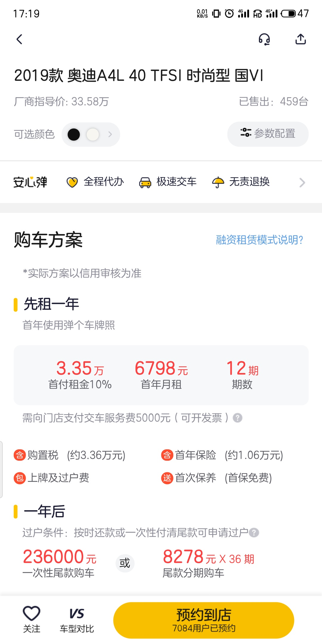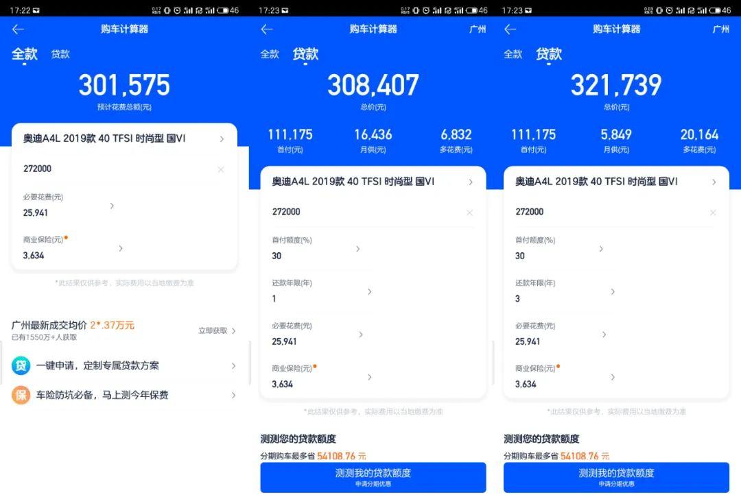 首先花费远高于正常购车。以“2019款奥迪A4L 40 TFSI 时尚型 国VI”为例,标价33.58万,猪编问了下4S店朋友,可以优惠6.38万。
