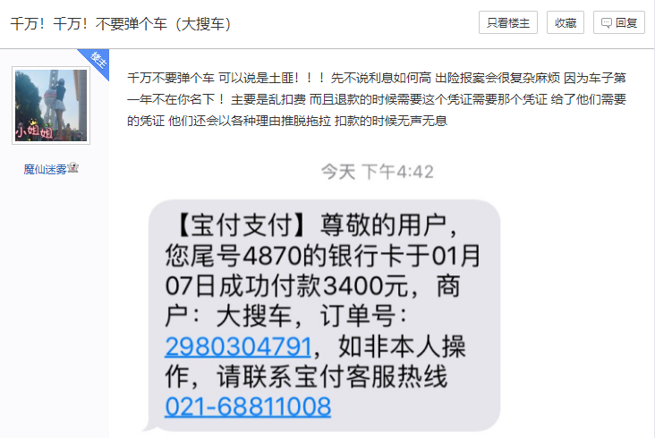 他们会反复强调自己是阿里巴巴合作伙伴,跟支付宝也有PY交易:“我们是阿里巴巴一起管理的,您买车是在天猫上买的,如果有问题的话怎么可能在天猫上卖呢?”