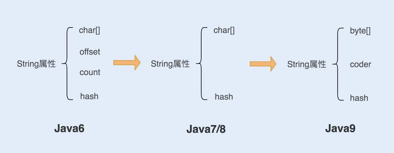 我们认识到做好 String 字符串性能优化,可以提高系统的整体性能。在这个理论基础上,Java 版本在迭代中通过不断地更改成员变量,节约内存空间,对 String 对象进行优化。