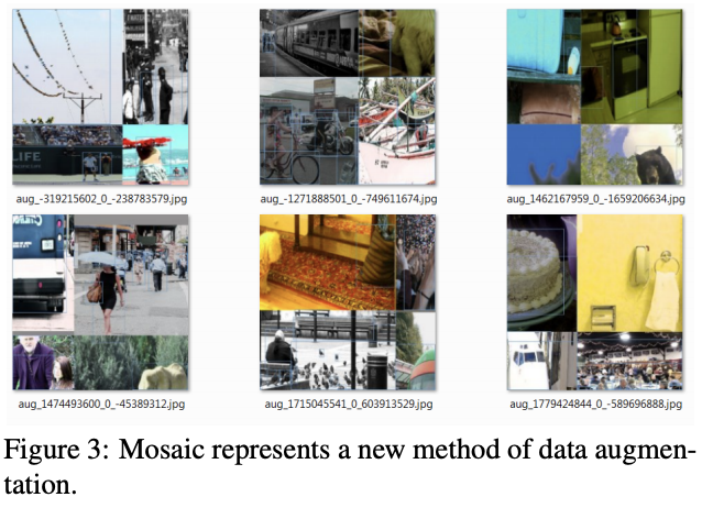 Mosaic是新的数据增强方法,同时融合4张训练图片,CutMix仅融合2张图片,使得目标的检测范围超出其正常的上下文,另外BN每次统计4张图片,这能显著地减少对大mini-batch的需要。