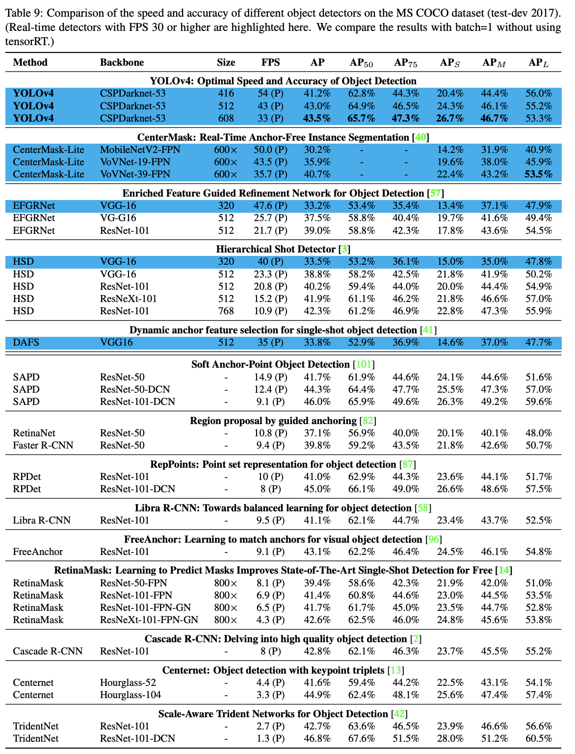 - 验证了目前SOTA的Bag-ofFreebies(不增加推理成本的trick)和Bag-of-Specials(增加推理成本的trick)的有效性。