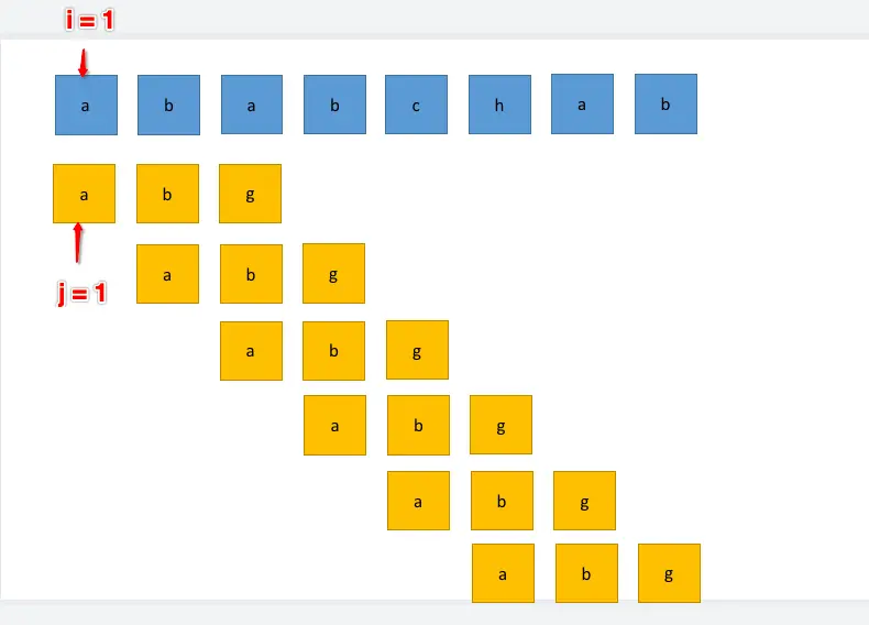// i 主串S中当前位置下标值,pos为指定开始匹配位置