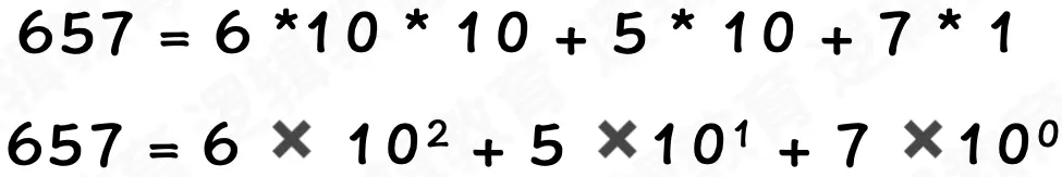 127: s[i] = 1 * 10^2 + 2 * 10^1 + 7 * 10^0
