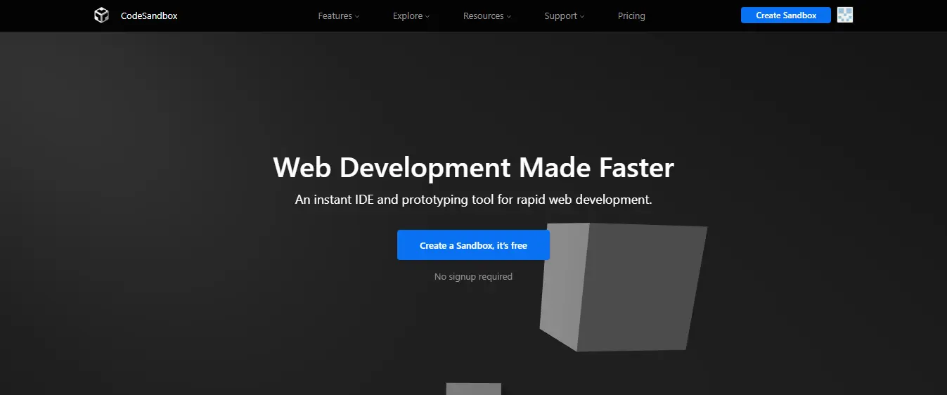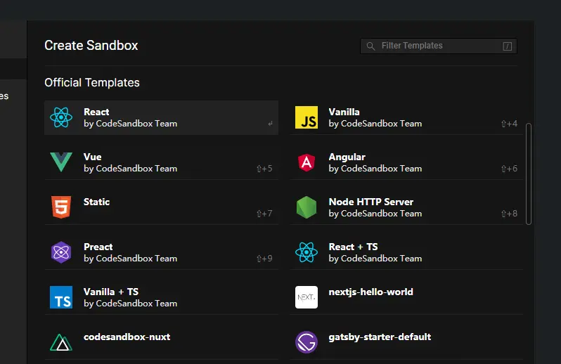 CodeSandbox 是一个为 Web 应用程序开发而构建的在线编辑器,这个网站内置了多种 Web 开发框架的编译及运行配置,使得开发人员不需要进行繁琐的项目配置就可以着手进行开发工作,从而更好的专注于编写代码。